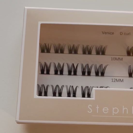 Venice vippene kommer som forhåndskuttede segmenter på brett i lengdene 10, 12 og 14 mm, som gir deg friheten til å designe vippene dine etter din personlige stil.